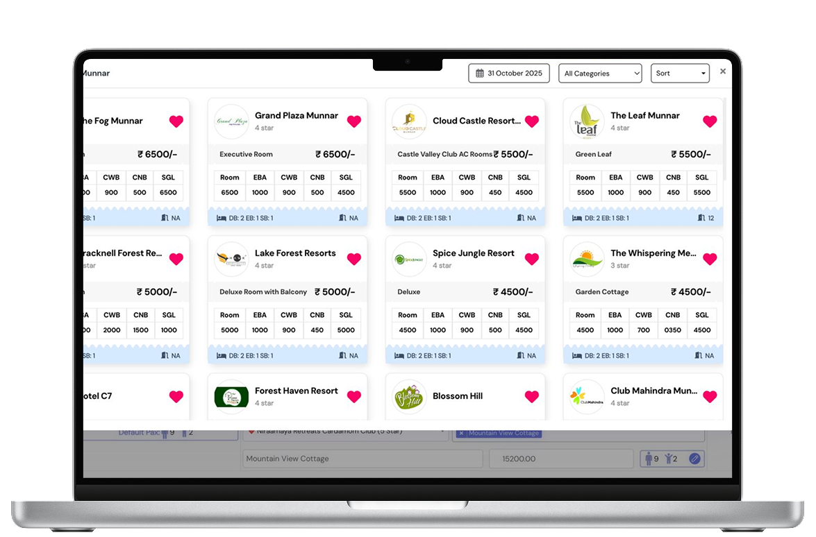 For Destination Management Companies that prepare client quotations using directly contracted rates from properties and service providers.
